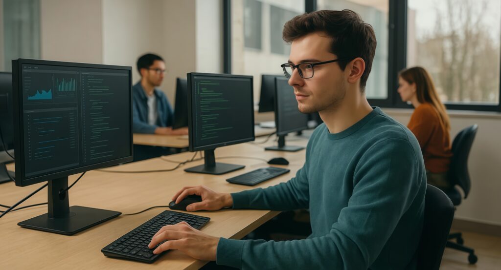 Обучение включает в себя изучение алгоритмов, структур данных, операционных систем, а также специализированные курсы по выбранным направлениям. На программе студент может выбрать одно из интересующих его направлений: кибербезопасность, наука о данных, разработка приложений, искусственный интеллект. Практика составляет 40% учебного плана. Лекторами учебной программы являются признанные практикующие специалисты.