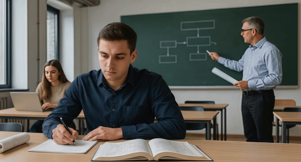 Программа включает курс базовых научных дисциплин инженерно-технических и экономических наук. На втором курсе добавляются профессиональные дисциплины: web-технологии, статистика, энергетика, окружающая среда, системы производства, основы автоматизации бухгалтерского учета, договорное право и право интеллектуальной собственности, предпринимательство.