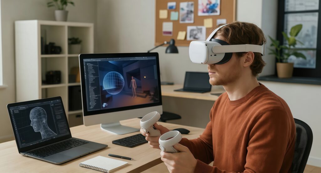 Инновационная учебная программа разработана на стыке компьютерных игр, видео и фотографии, а также быстро развивающихся областей искусственного интеллекта и виртуальной раальности(VR). Программа охватывает такие области, как 3D-моделирование, 3D-анимация и программирование в виртуальных средах (от игр до цифрового искусства). Студенты научатся создавать захватывающие иммерсивные проекты в виртуальной (VR), дополненной (AR) и смешанной (МR) реальности, развивая технические навыки и критическое мышление.